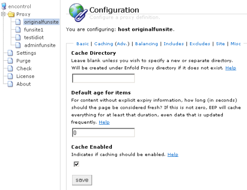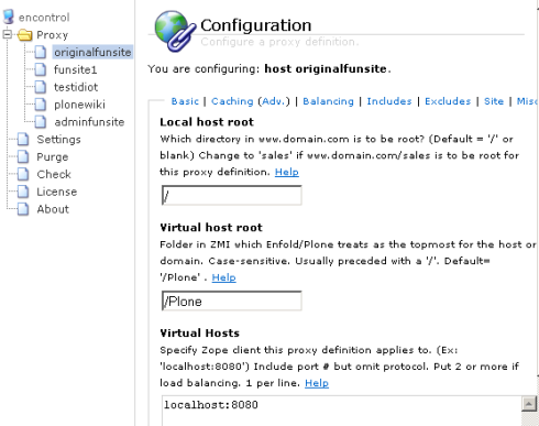 After you press Save, you should see the originalfunsite proxy definition appear underneath the Proxy category. When you click on that, the right panel will show the Basic tab. This actually is the tab you will be using most often.