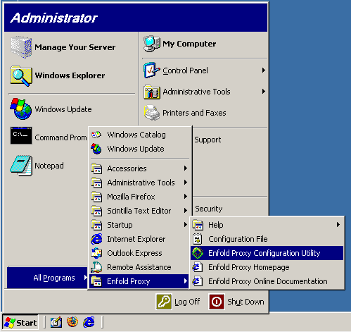 You may also launch the graphical controller though the Enfold Proxy Configuration Utility icon at any time. This can be found in the start menu under Enfold Proxy: